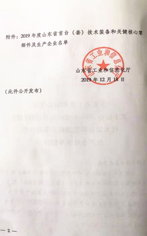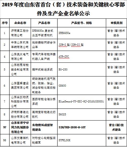 公司納入山東省首臺套生產(chǎn)企業(yè)名單